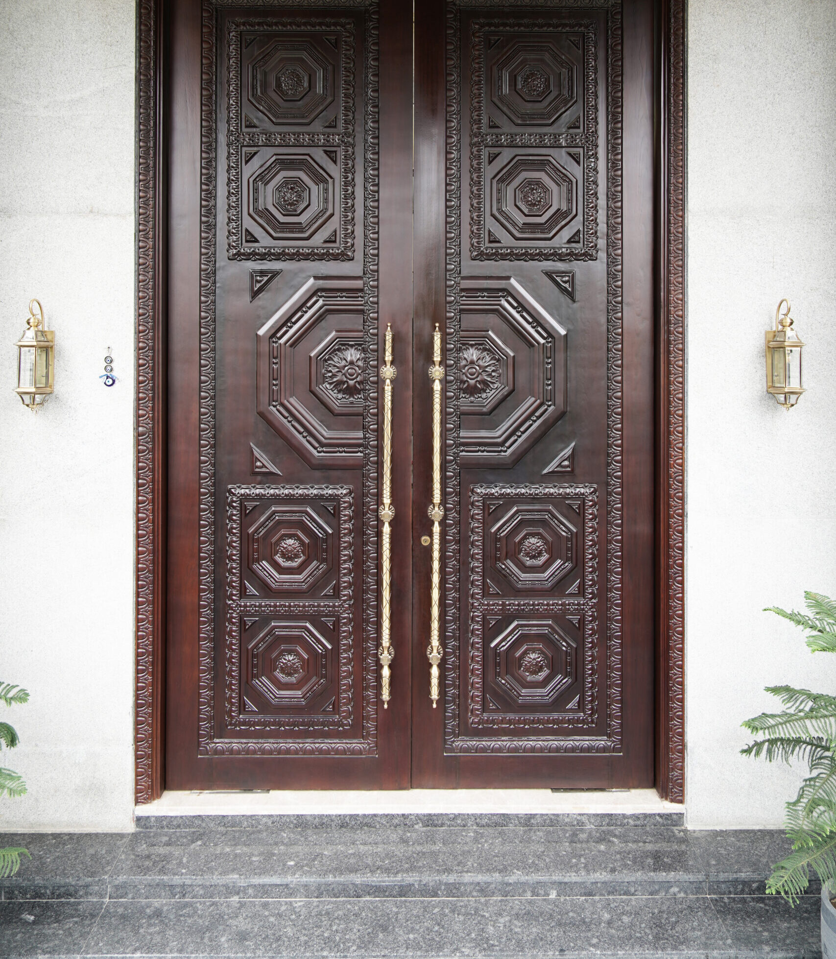 The fusion of classical ornamentation and opulent brass accents elevates the architectural splendor, exuding an aura of exquisite elegance.