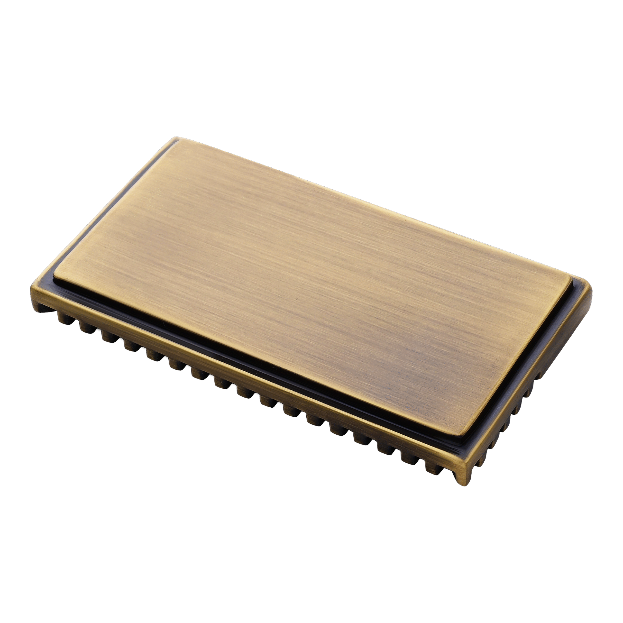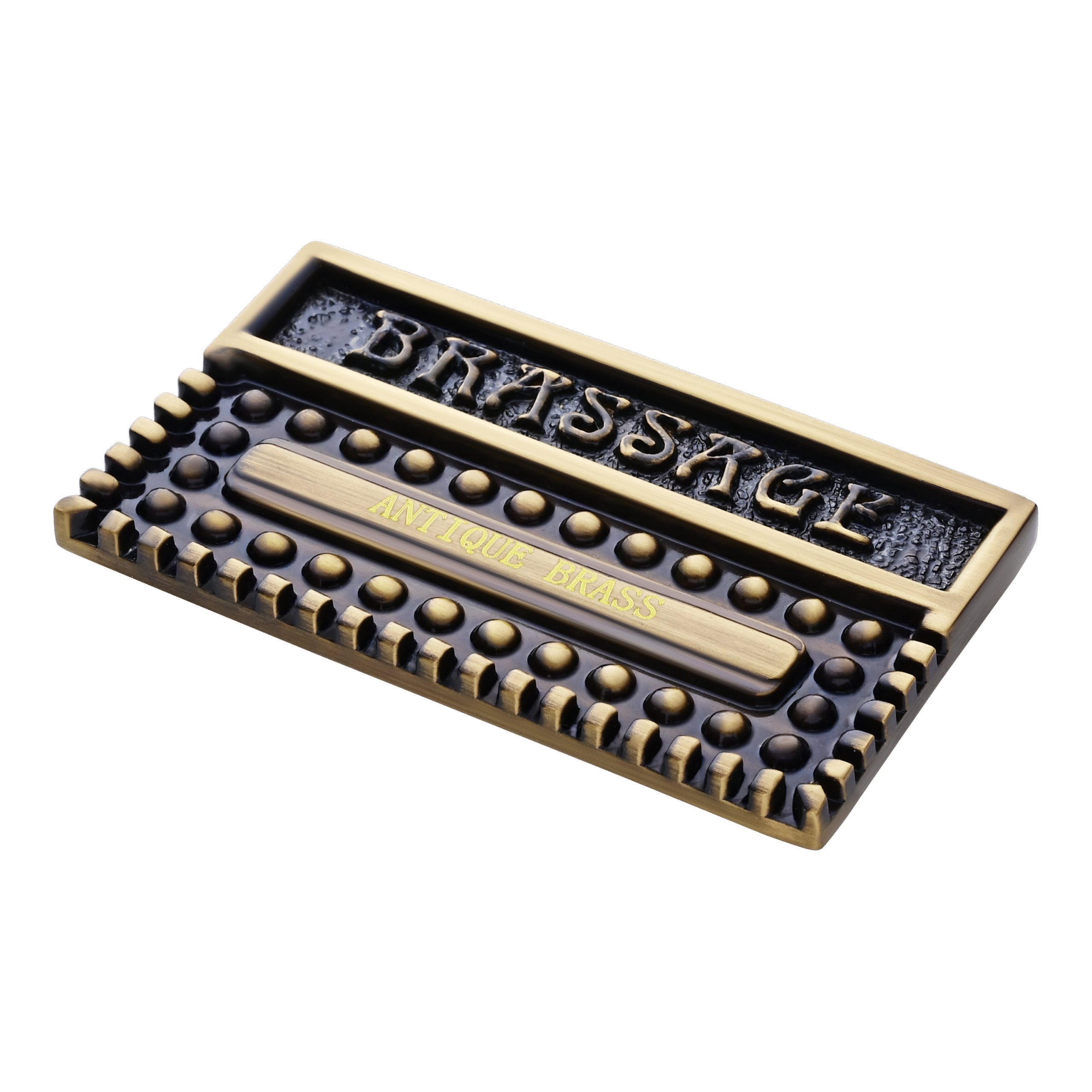 The finish of all ages. The polished product is oxidized by hand to develop a dark brass patina. It is then brushed manually on a finishing wheel to reveal various tone contrasts depending on the level of detail on each product. Coated with clear gloss Lacquer.