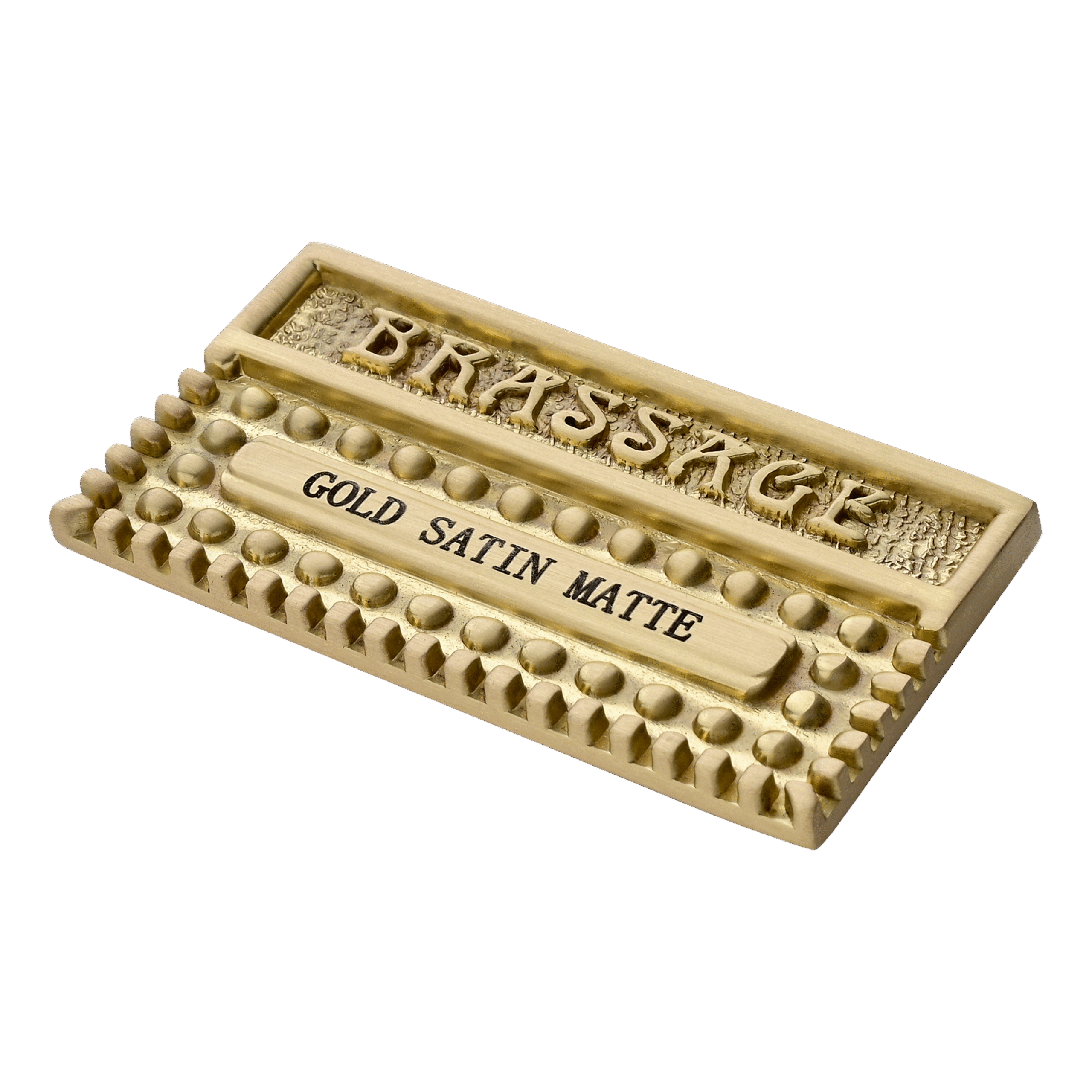 The product is hand sateened to give a brushed satin finish. Coated with clear Matte Lacquer.