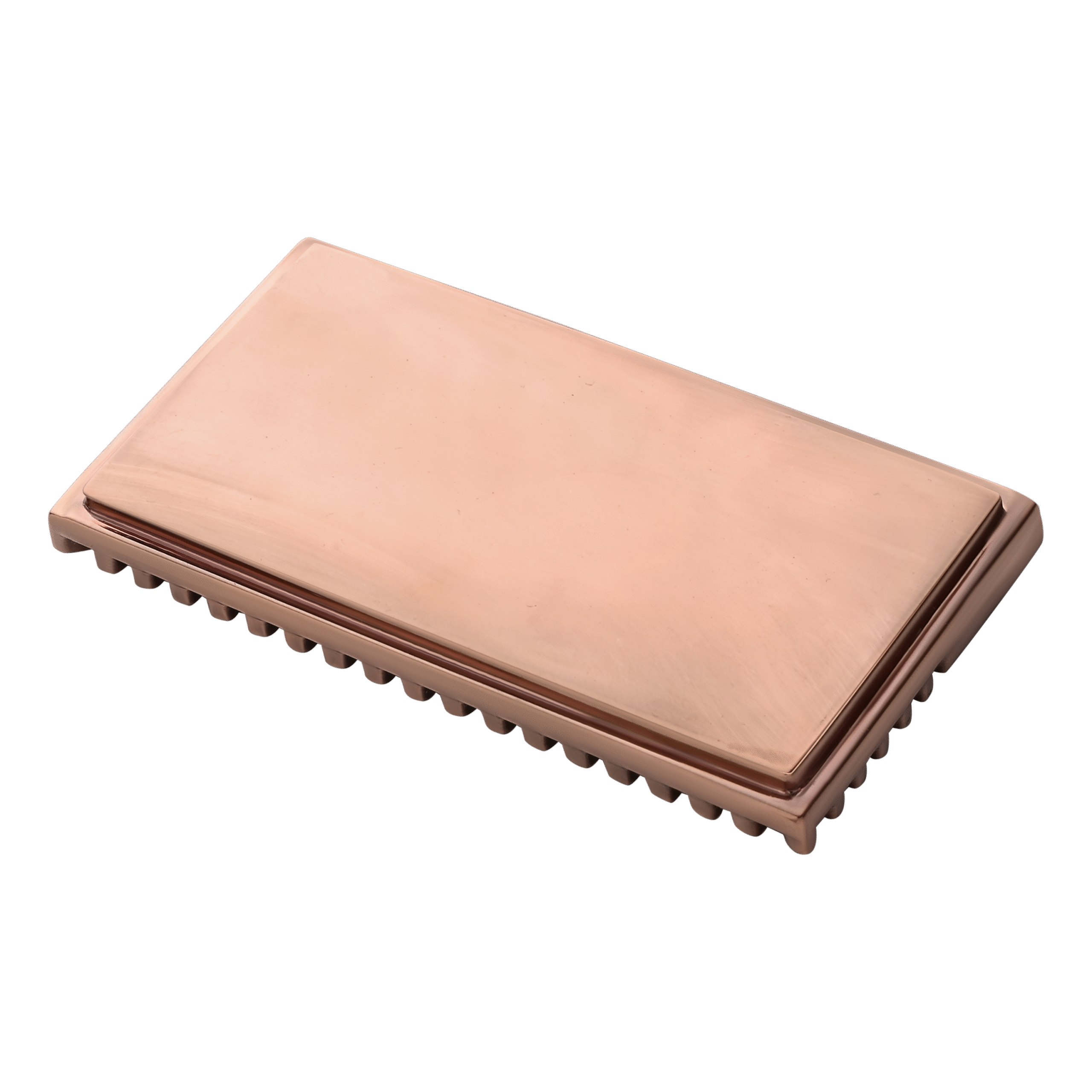 Multiple hand polishing processes are used to create a smooth mirrored surface. The product is then copper plated. Coated with clear gloss lacquer
