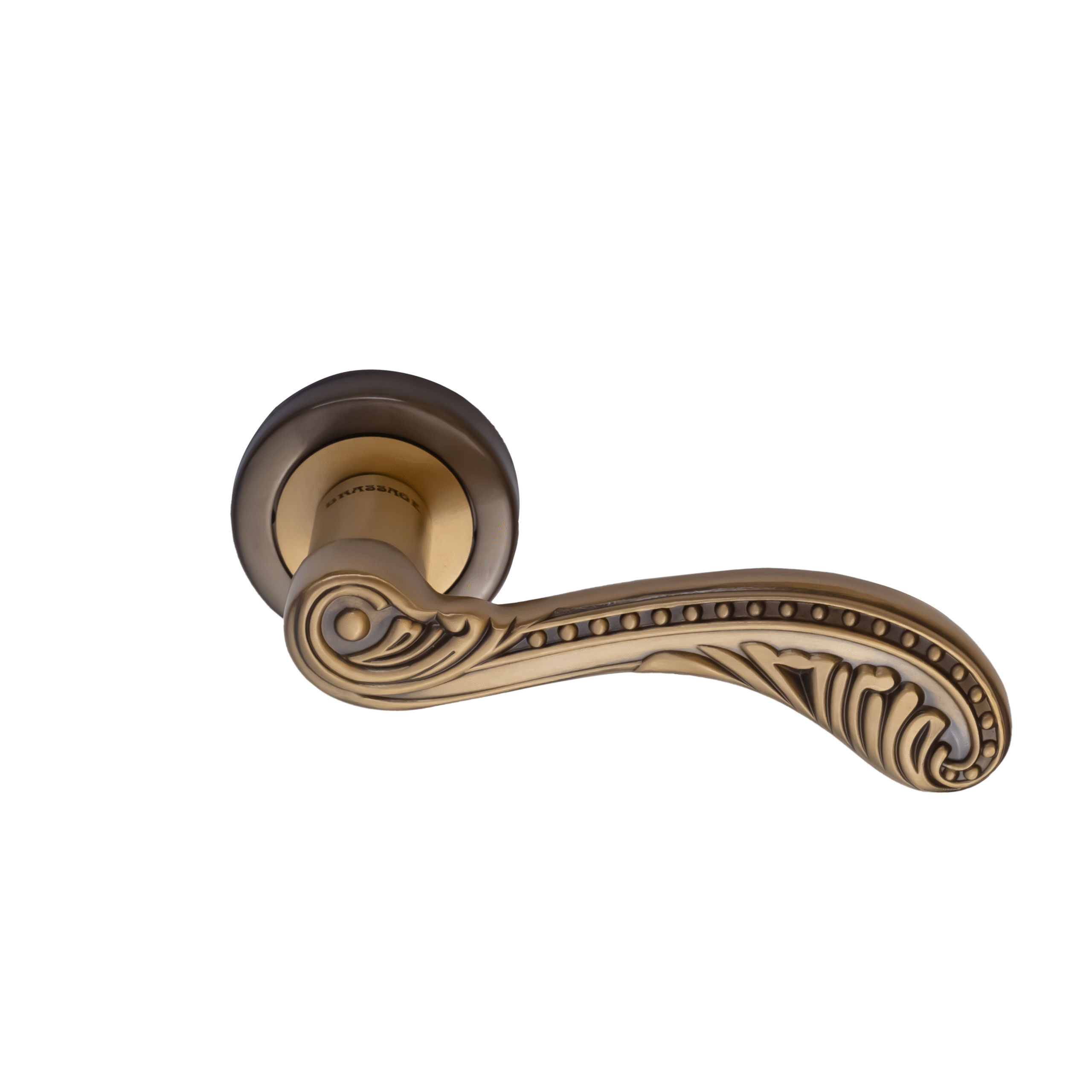 An elegantly arched lever adorned with rhythmic detailing along its contour, this design blends ornamental finesse with graceful form, suited for classical interiors that value symmetry, refinement, and decorative expression.