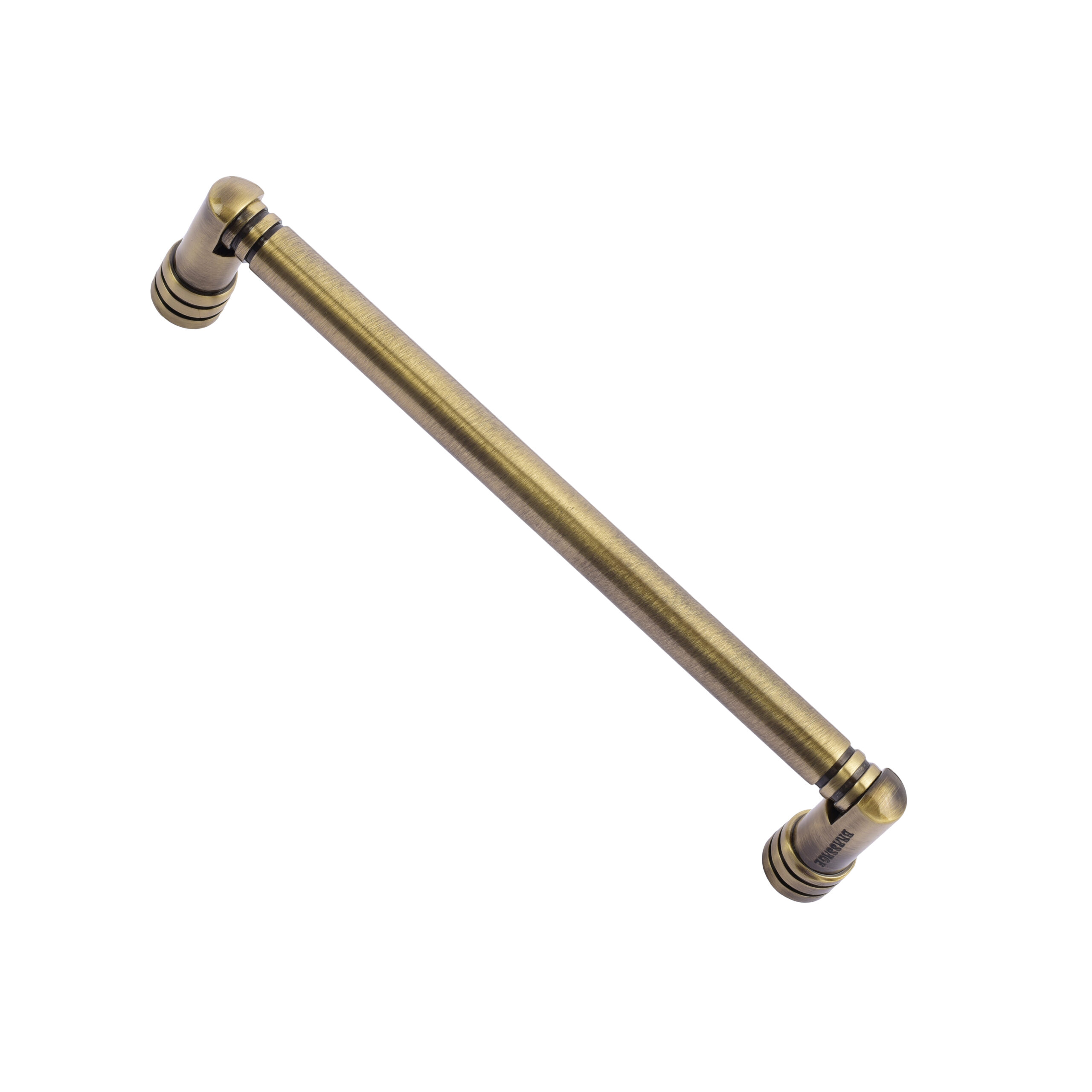 The Atia handle features a streamlined cylindrical body complemented by grooved detailing at the base and rod ends, adding a subtle touch of craftsmanship. Its clean, minimalist form makes it a versatile choice for both classic and modern applications.