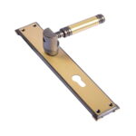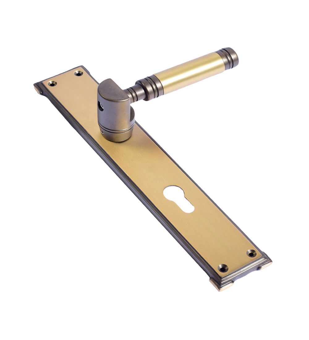 Crescent Antique Gold Brass Door Lever Handle Contemporary on Plate