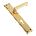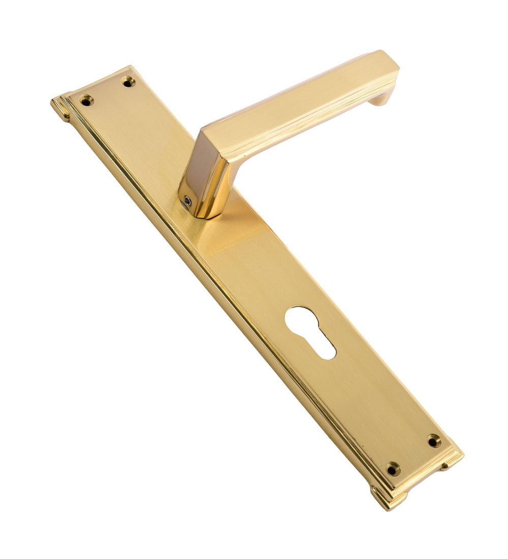 Elizabeth Gold Stain Brass Door Lever Handle Contemporary on Plate
