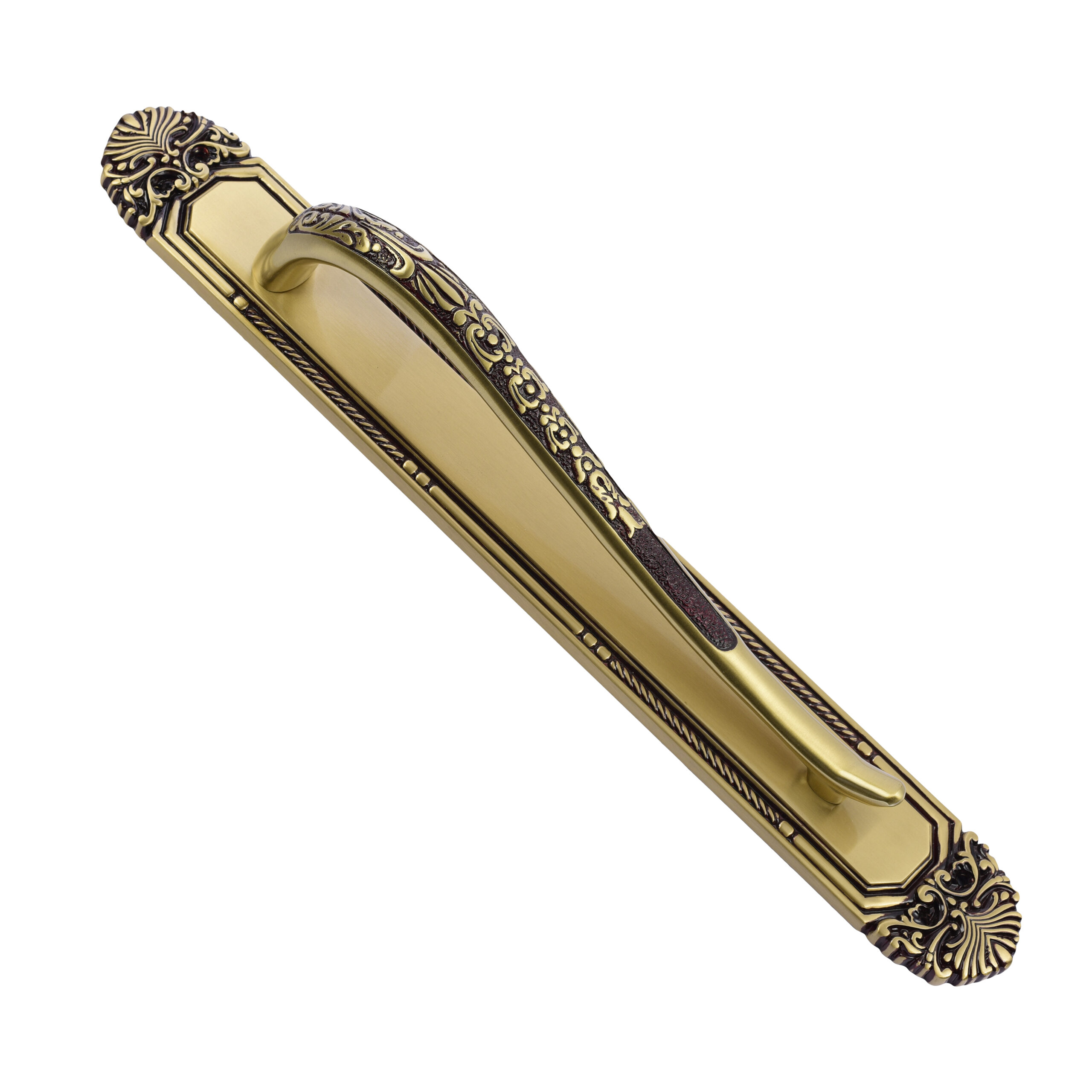 The Kohinoor pull handle is a celebration of vintage opulence, featuring an elegantly arched form embellished with intricate floral and vine engravings. Its richly detailed backplate, inspired by classical motifs, adds a regal presence—making it an exquisite choice for traditional and heritage-style interiors.