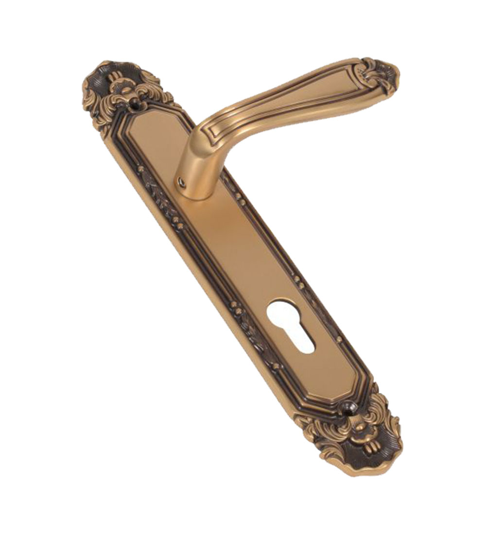Mumtaz Antique Gold Brass Door Lever Handle Classic on Plate