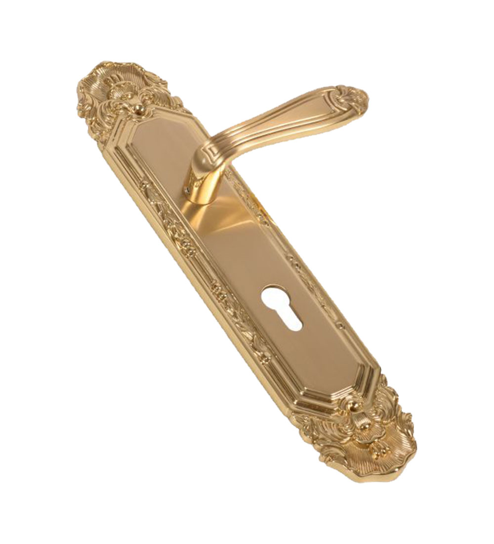 Mumtaz Gold Stain Brass Door Lever Handle Classic on Plate