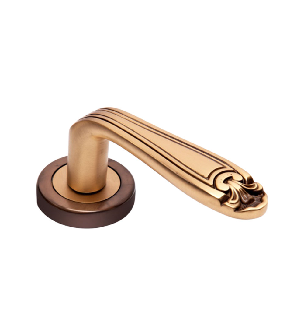Mumtaz on Round Rose Antique Gold Brass Door Lever Handle Classic on Rose
