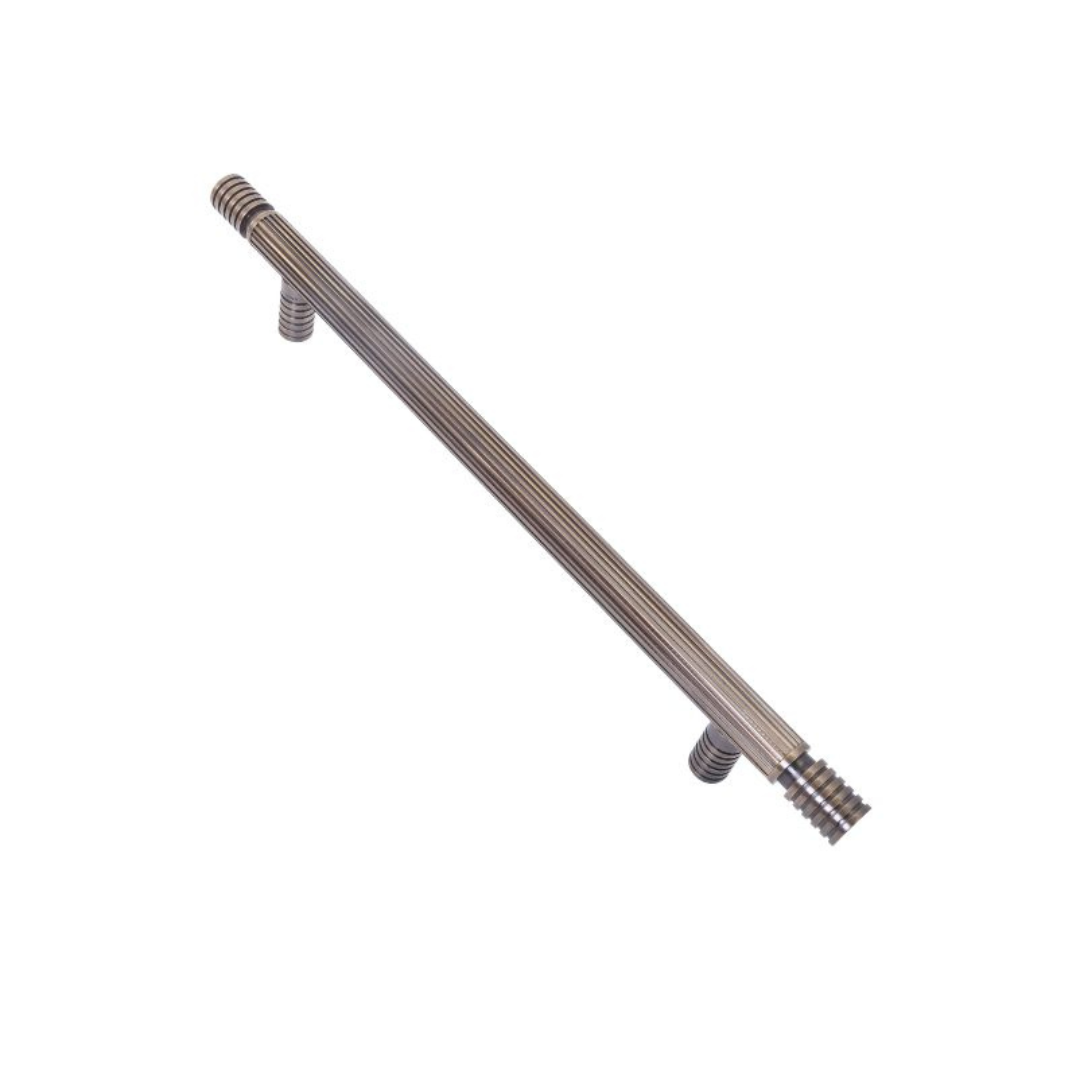 This exquisite handle embodies the essence of neoclassical design, with a subtly tapered body that gently bulges toward the center, creating a graceful curvature. The smooth transition into rounded, capped ends ensures a comfortable grip with an air