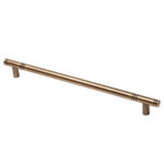 This handle features a bold vertical profile with a finely ribbed texture that echoes the fluted surface of the cabinetry it sits on. Its clean lines and linear grooves offer a harmonious blend of function and form, adding a refined architectural ele