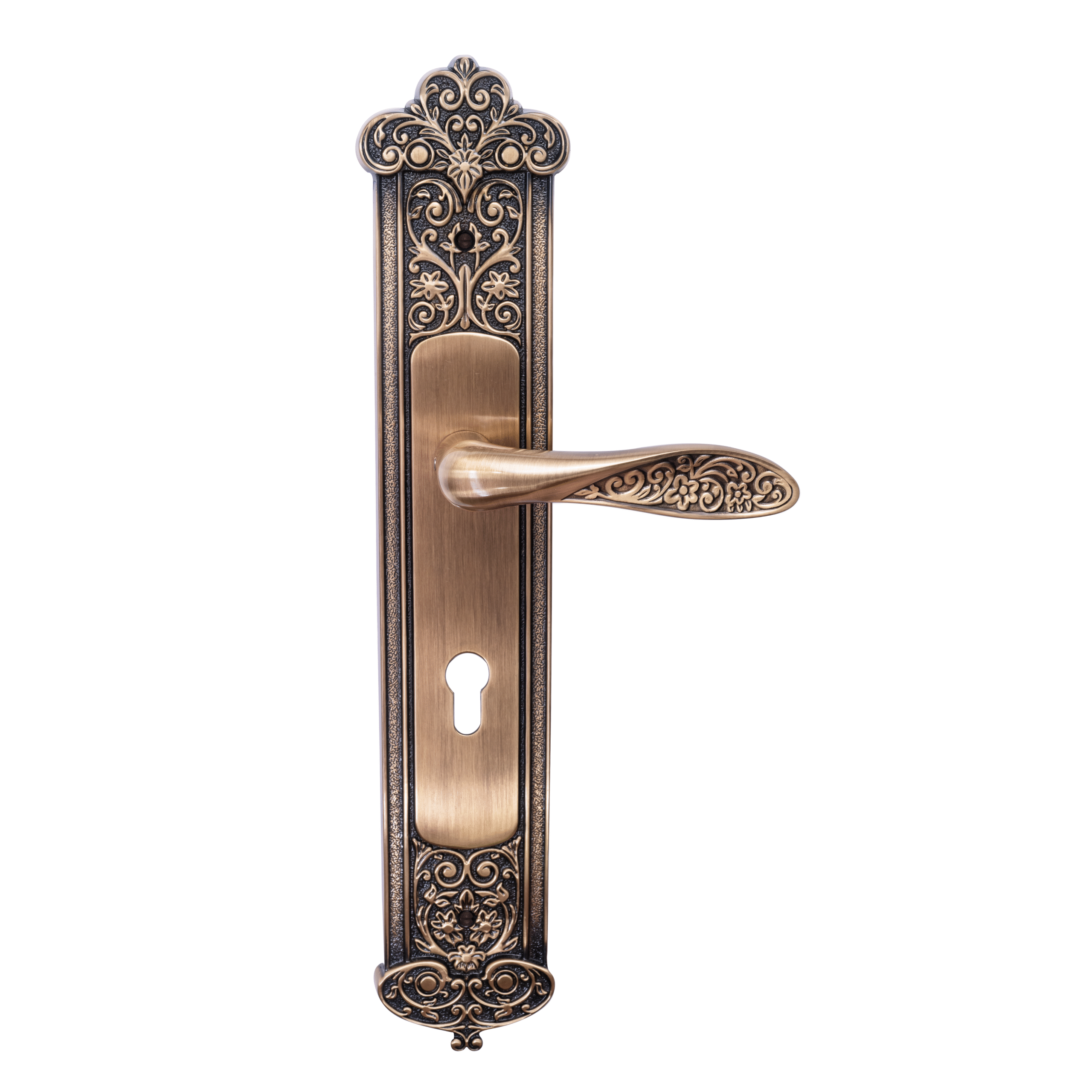 A gently tapered lever adorned with intricate floral engraving, its form unfurls like a budding flower—capturing classical refinement through graceful curves and ornamental artistry for interiors rooted in timeless detailing and traditional elegance.